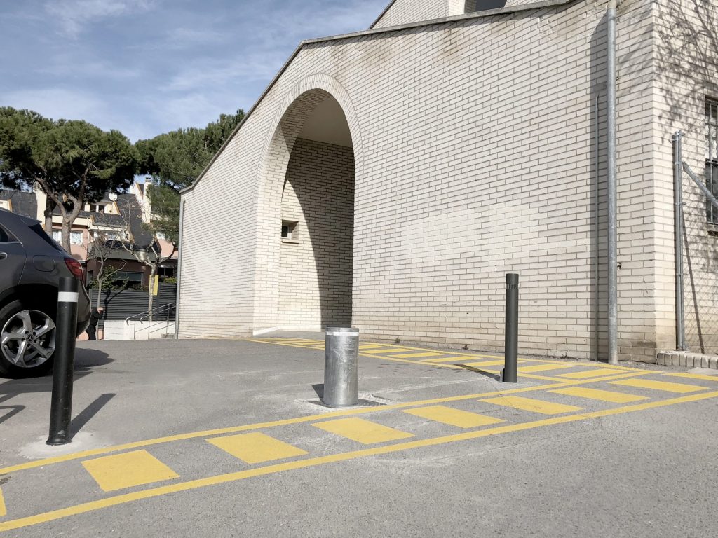 Installation of a removable bollard in iron City model, of a telescopic semi-automatic bollard London model and of a flexible bollard A-Resist model to delimitate a restricted area for residents and privates.