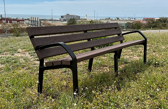 Eco Alba urban bench made of polyethylene plastic, ideal for public places: parks, gardens, schools, town halls... as well as private places: housing estates, homeowners' associations...
